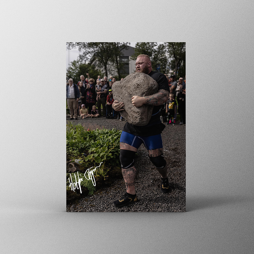 Own a unique collectible signed by one of the World’s Strongest Man Hafþór Júlíus Björnsson. This 25×20 cm poster features a crisp image and an authentic, handwritten autograph from the legendary strength athlete and actor. Perfect for fans, collectors, and anyone who admires one of the strongest men in history.